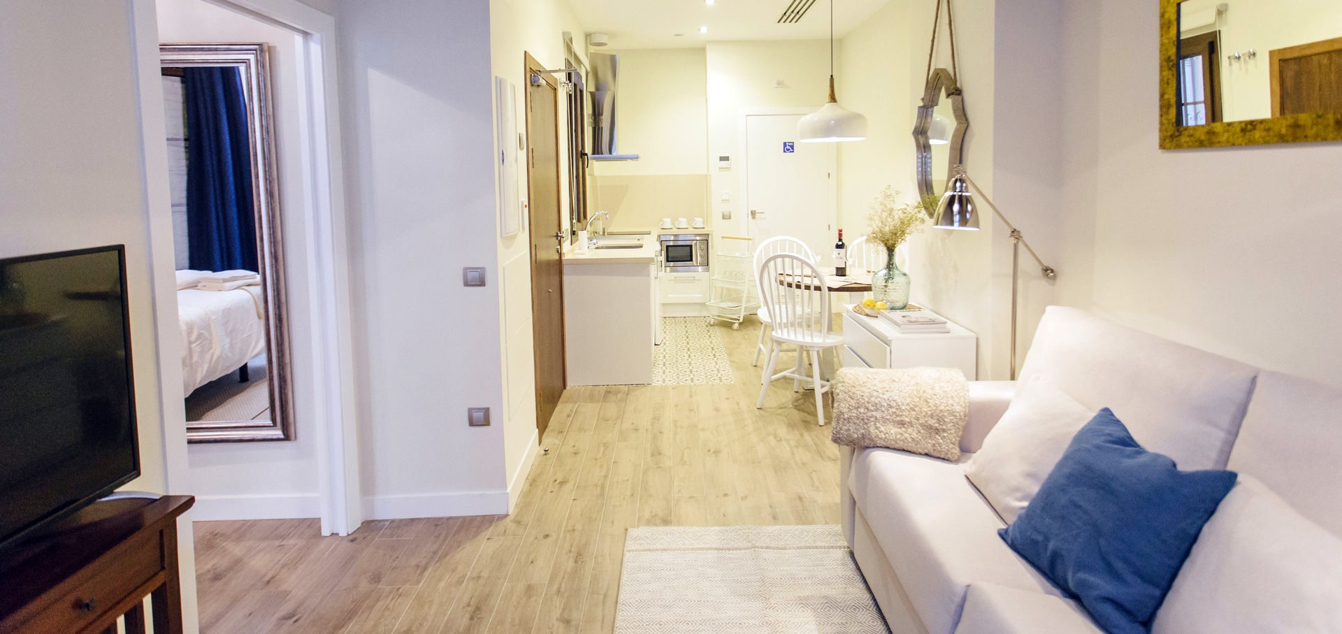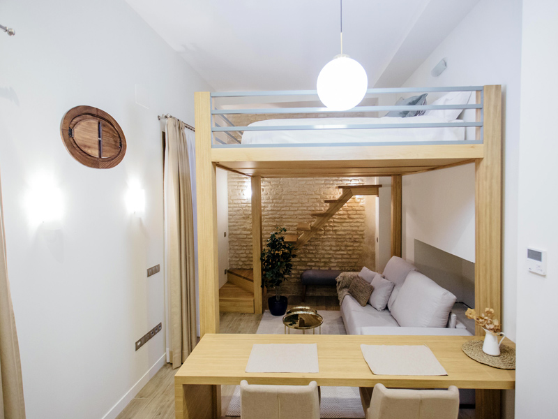 Sus apartamentos recién reformados cuentan con tramos de pavimento hidráulico original, que data del siglo XIX. Por supuesto, cuentan con todas las comodidades: aire acondicionado, cocinas totalmente equipadas, zona de trabajo, internet de alta velocidad, baño y dormitorios tranquilos en los que poder descansar. Disfrute de su piscina en la cubierta, en la que podrá refrescarse después de un día visitando la capital hispalense.