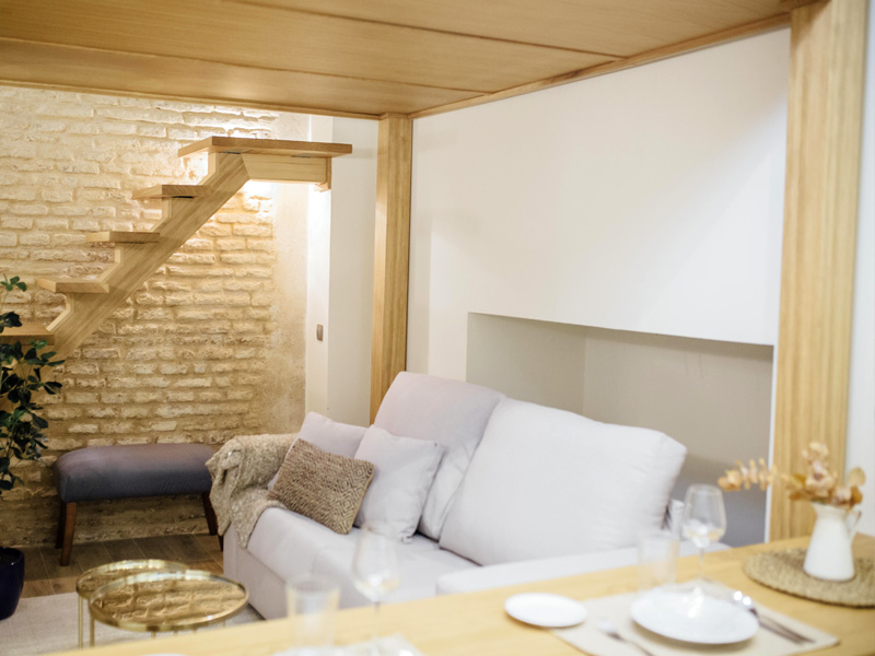 Esta tradicional construcción casa-patio sevillana, con ladrillo, vigas de madera y reja monumental original es resultado de la fusión de dos casas antiguas. En su rehabilitación se han conservado elementos originales como pavimentos hidráulicos, cerámicas artesanales y forja del XIX.